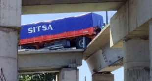 SEGUIR LEYENDOIncreíble: camión con acoplado quedó atascado en el puente vehicular de Padua y fue removido con una grúa