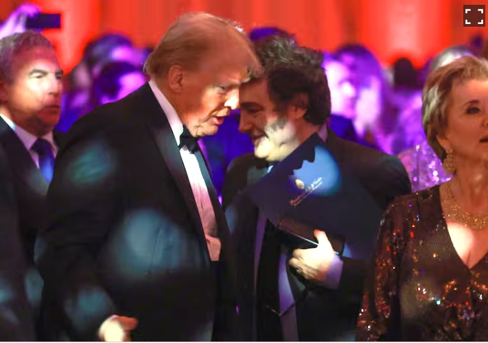 Anoche Milei conversó con Trump informalmente durante una gala del grupo conservador America First Policy Institute, en Mar-a-Lago, donde intercambiaron elogios y gestos de cercanía. El encuentro fue celebrado por la comitiva argentina.
