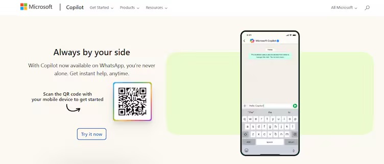 Para comenzar a usar Copilot desde WhatsApp solo hace falta ingresar al sitio oficial de la inteligencia artificial. Allí aparece un código QR que se debe escanear para iniciar una conversación con la IA.
