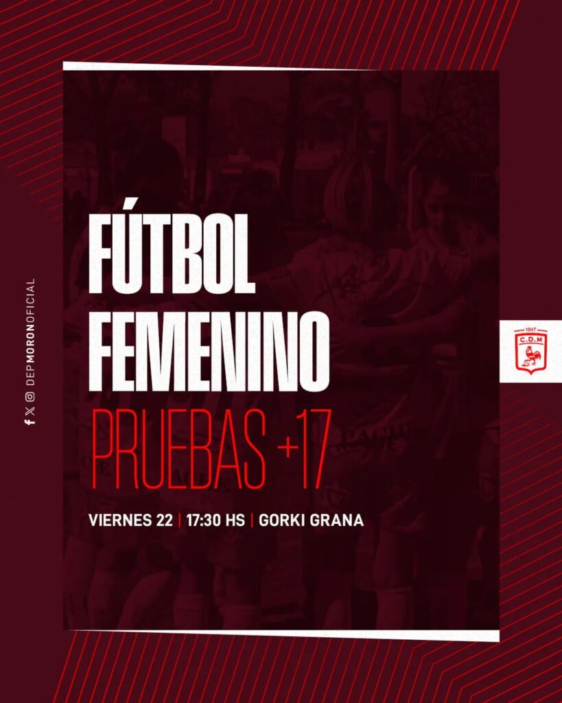 A través de sus redes sociales oficiales, las autoridades del Club Deportivo Morón anunciaron que realizarán pruebas de jugadoras para sumar su equipo de fútbol femenino de cara al 2025. Es importante señalar que las interesadas deben ser mayores de 17 años.