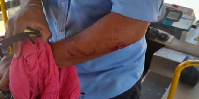 En ese momento, el colectivero puso un brazo delante de su pecho para amortiguar el golpe. Pero esa maniobra no pudo evitar que los vidrios lo cortaran.