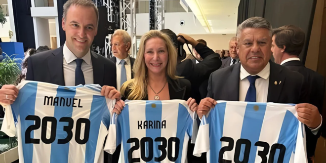 En el marco del Congreso Extraordinario de la FIFA celebrado en Asunción, Paraguay, Karina Milei, secretaria general de la Presidencia, y Claudio “Chiqui” Tapia, presidente de la AFA, ofrecieron declaraciones que marcaron un momento clave en la confirmación de Argentina como una de las sedes inaugurales del Mundial 2030: “Es un honor que seamos sede”, declaró la hermana del presidente, mientras que Tapia les agradeció por la tarea administrativa de los funcionarios del país.