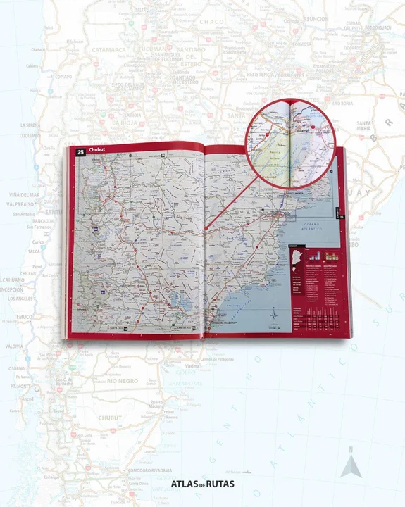 La curiosidad conduce, por ejemplo, a un lugar increíble que refleja una publicación que contiene más de 230 mapas a gran escala, 168 ciudades completas, guía de campings y hoteles, localidades con estaciones de carga GNC y peaje, la ruta 40 completa y la carretera Austral en Chile.