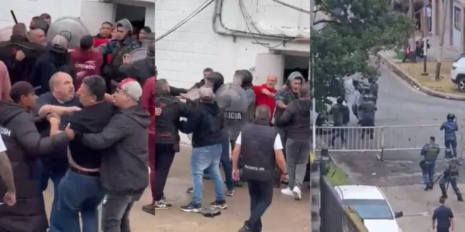 Apenas vieron ese movimiento, quienes estaban al frente del operativo de seguridad le pidieron a la Guardia de Infantería que se trasladara a esa zona y no permitiera que la acción de la barra se concretara. Ahí se dio el feroz enfrentamiento entre los oficiales de la Bonaerense y los miembros de la facción Villa Maipú con múltiples balazos de goma y cartuchos de gases lacrimógenos para dispersar la concentración, tal como se obseva en las imágenes.