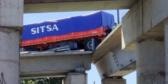 Un camión con acoplado quedó atascado en el puente vehicular que atraviesa las vías del ferrocarril Sarmiento en San Antonio de Padua, en Merlo. El vehículo debió ser removido por una grúa del Municipio y quedó secuestrado, a disposición de la justicia de Faltas.