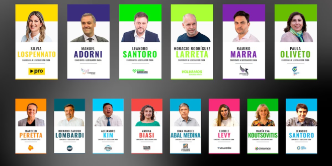 La primera sección de candidatos está compuesta por entre tres y cinco candidatos que pugnan por cada voto porteño y la segunda está ordenada por nombres conocidos por los habitantes de la Capital que tienen verdaderas chances de pasar el corte para ingresar con una banca a la Legislatura porteña pero que están más alejados de la lucha por el podio.