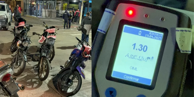 Asimismo, 11 motos fueron secuestradas y junto a registros retenidos por no contar con la documentación habilitante para circular, por transitar en vehículos con numeración adulterada y alcoholemias positivas en distintas graduaciones.